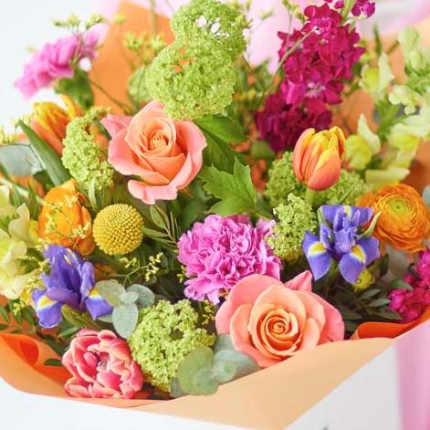 A handcrafted bouquet made by a local florist using the freshest blooms. This classic bouquet will feature flowers in vibrant shades inspired by spring. Think tangerine, cerise, chartreuse and ochre.