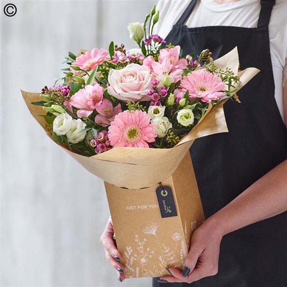 Hand-tied flowers expertly arranged and perfectly presented in a pretty gift box. Each and every design is one-of-a-kind, created by an artisan florist using the freshest stems available on the day so, whilst your gift will look different to the one pictured, it’ll still be just as lovely.