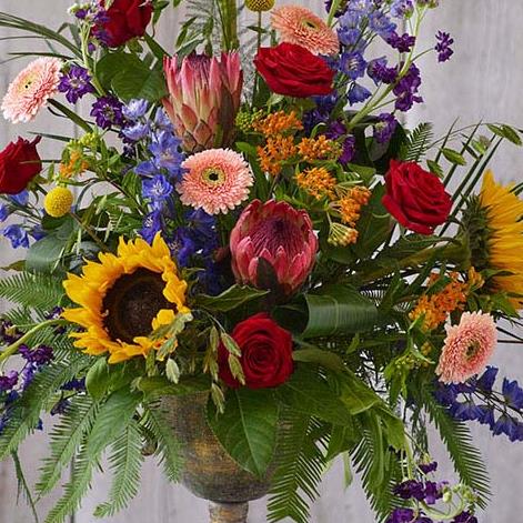 A remarkable service arrangement, presented in an urn, will be made with the finest flowers, lovingly hand-crafted and delivered with care by our local artisan florists.