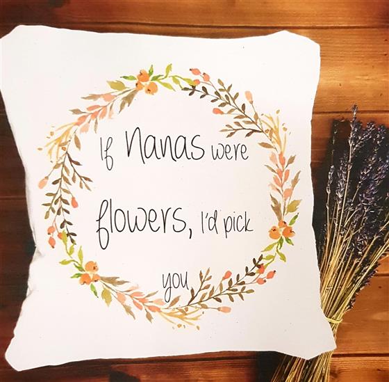 Handmade cushion adorned with a beautiful floral design; personalise with the name of your choosing to create a unique and personal gift.