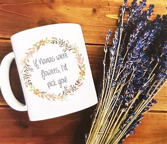 Handmade mug adorned with a beautiful floral design; personalise with the name of your choosing to create a unique and personal gift.