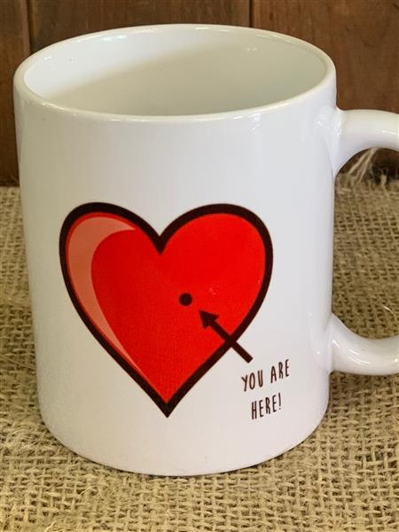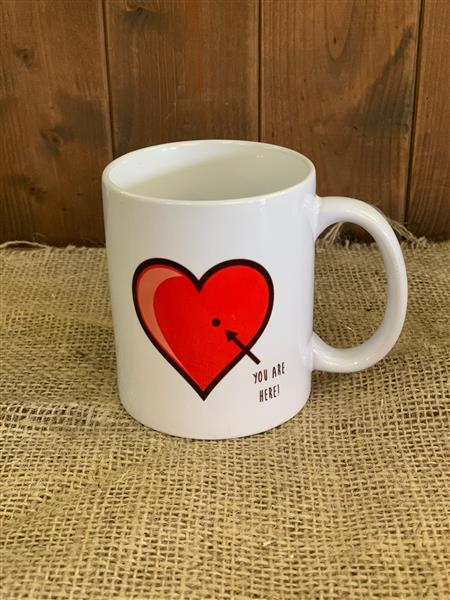 Handmade mug with a beautiful heart design with an arrow pointing to where you loved one belongs. Personalise it with a name of your choice.