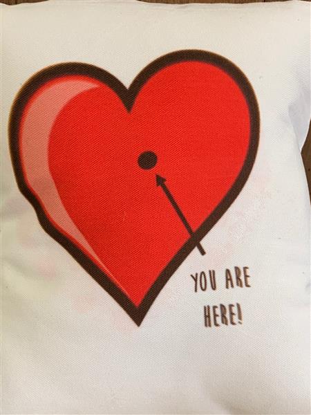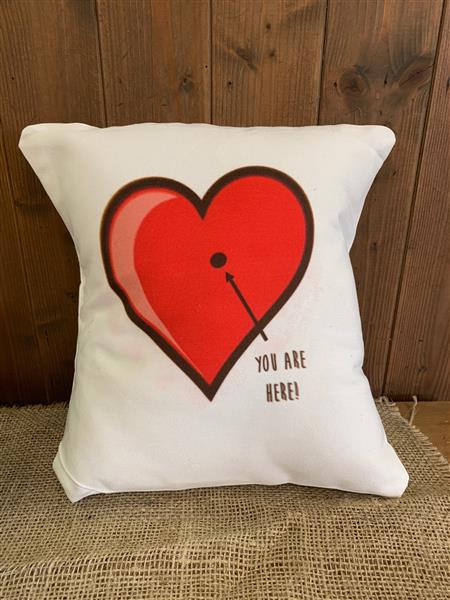 Handmade cushion adorned with beautiful heart with an arrow pointing to where your loved one belongs.